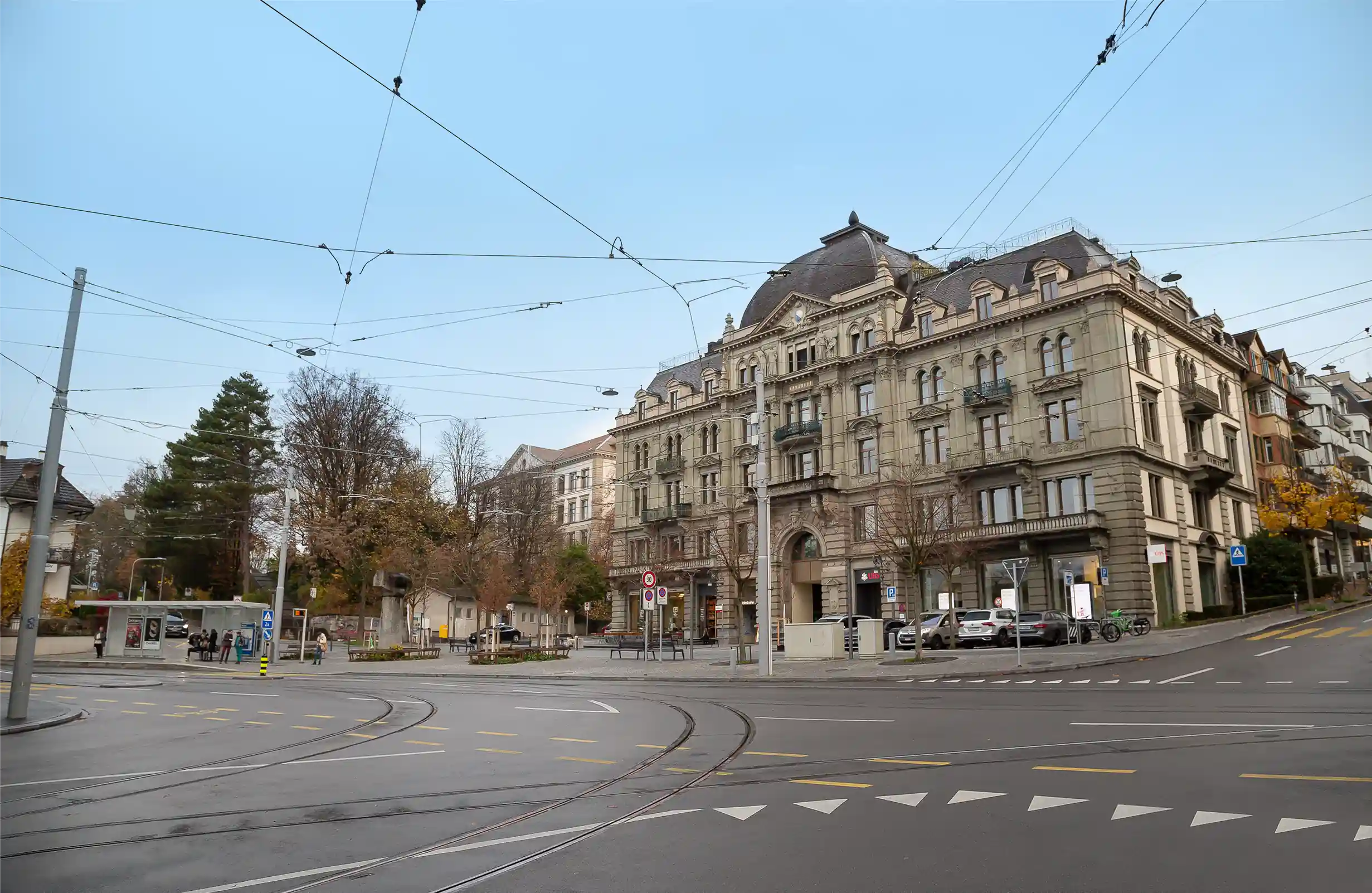 Die Praxis am Römerhof befindet sich im 2. Stockwerk, oberhalb der Bank UBS im grossen Gebäude, direkt vor der Haltestelle Römerhof.